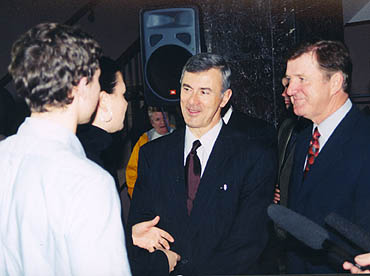 Roger Grimes greeting volunteers at ceremony to thank them for their contributions