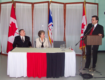 brings greetings with Intergovernmental Affairs Minister, Tom Lush (left)