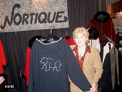 Karen Matthews designs and manufactures clothing at her company, Nortique, in Corner Brook. Traditionally she has made coats in wool, and has now added a range of stylish lighter coats in cotton and synthetic materials. She has recently added embroidery to her woollen coats. Her polar bear motif is particularly popular. |