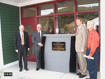 (L to R) Dr. Axel Meisen, president and vice-chancellor of Memorial University, Kelvin Parsons, provincial minister of Industry, Trade and Rural Development, Gerry Byrne, minister of state for the Atlantic Canada Opportunities Agency and Mr. Robert Hicks, chairman of the Gros Morne Co-operating Association, officially opened Memorial University's newest state-of-the-art facility, the Bonne Bay Marine Station in Norris Point today. |