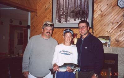 with first salmon on the Humber River, his dad Wayne at left and Chris