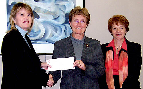 Joan Burke, Minister of Human Resources, Labour and Emplyment (left) presents the Kids Eat Smart Foundation's Jeannie House (centre), Chair of Board of Directors and Susan Green (right), Executive Director, with a $500,000 contribution on behalf of the Government of Newfoundland and Labrador. The contribution will assist the foundation in providing breakfast, lunch and snack programs in schools and community centres throughout Newfoundland and Labrador. |