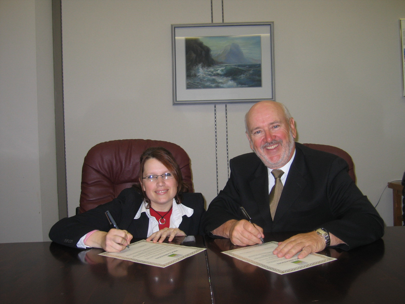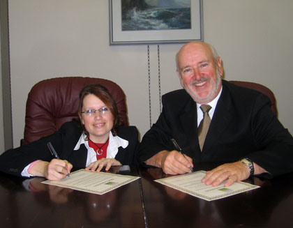Kim Gillard and Dave Denine, signing a proclamation declaring September 8th International Literacy Day To download a high-resolution copy of the photo above click here. |