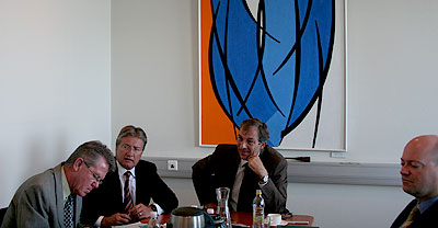 Premier Williams and Minister Rideout meet with Johann Sigurjonsson, Director of the Marine Research Institute of Iceland, August 30, 2006 To download a high-resolution copy of the photo above click here. |