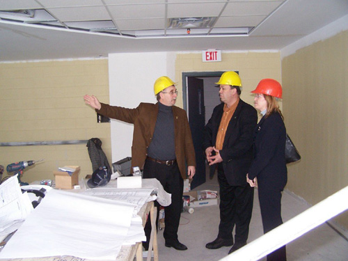 Bob Simms, campus administrator gives a tour to Joan Burke, Minister of Education and John Hickey, Minister Responsible for Labrador Affairs. |