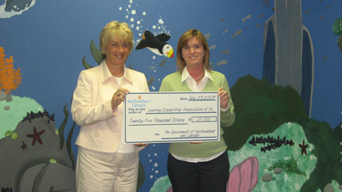 Minister Joan Burke presents $25,000 in funding to Lynn Green, president of the Learning Disabilities Association of Newfoundland and Labrador. |