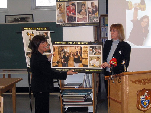 Minister Burke presents the Power To Achieve poster, part of the Jump Start Your Life campaign, to Sharon Brennan, vice-principal of Holy Heart High School. |