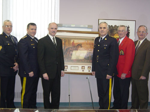From left: RCMP Sgt. J.D. Walsh, RCMP Chief Superintendent Bill Smith, Minister of Justice Tom Osborne, Assistant RCMP Commissioner Gerry Lynch, President of the RCMP Veteran's Association Ken Ellis and Ralph Alcock, Assistant Deputy Minister, Department of Justice. |
