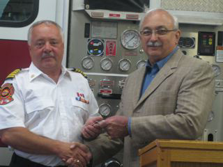 Mayor Woodrow French of the Town of Conception Bay South presents the keys to Richard Murphy, President of the Newfoundland and Labrador Association of Fire Services and Fire Chief, Conception Bay South |