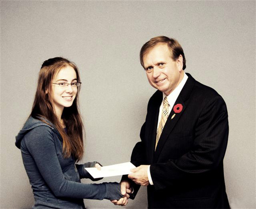 The Honourable Tom Hedderson, Minister of Fisheries and Aquaculture, with scholarship winner Jessica Besaw. |