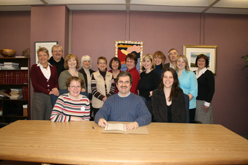 The Honourable Shawn Skinner, Minister of Human Resources, Labour and Employment and Minister Responsible for Persons with Disabilities signs the Support Employment Awareness Month proclamation. |