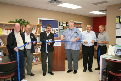 The Honourable Shawn Skinner, Minister of Human Resources, Labour and Employment, third from the left, is joined by (from L to R) John Maher, Mayor of the Town of Fox Harbour; Gary Keating, Mayor of the Town of Long Harbour; William Hogan, Mayor of Placentia; Calvin Peach, MHA Bellevue District; Felix Collins, MHA Placentia District. |