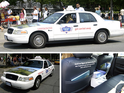 As a part of Newfoundland and Labrador�s tourism campaign, this �Get Carried Away� vehicle will offer free rides to pedestrians in the downtown Toronto area. |