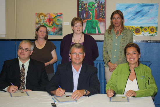 Front Row: Tom Dawe — Executive Director of Teachers on Wheels, Minister King, Caroline Vaughan — Executive Director of Literacy NL.