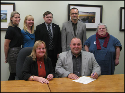 Stephanie Harlick, President, Association of Newfoundland and Labrador Archives (ANLA) and the Honourable Terry French, Minister of Tourism, Culture and Recreation, were recently joined by members of the ANLA executive and archives community to proclaim November 15-21 as Archives Week. From back left are: Colleen Quigley, Chair, ANLA Education Committee; Jenny Seeman, Vice-President, ANLA; Greg Walsh, Provincial Archivist; Jerry Dick, Director, Heritage Division, Department of Tourism, Culture and Recreation, and Mary Ellen Wright, Professional Development and Outreach Officer, ANLA.