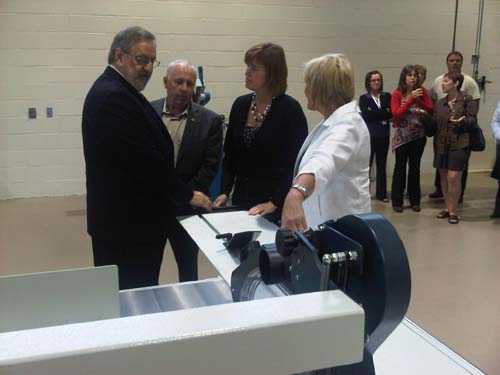 Paul Chafe, left, co-campus administrator of College of the North Atlantic, Grand Falls-Windsor, joins Grand Falls-Windsor - Green Bay South MHA Ray Hunter, the Honourable Joan Burke, Minister of Education, and the Honourable Susan Sullivan, Minister of Innovation, Trade and Rural Development and MHA for Grand Falls-Windsor - Buchans for a tour of the new industrial trades suite at the Grand Falls-Windsor campus of College of the North Atlantic.