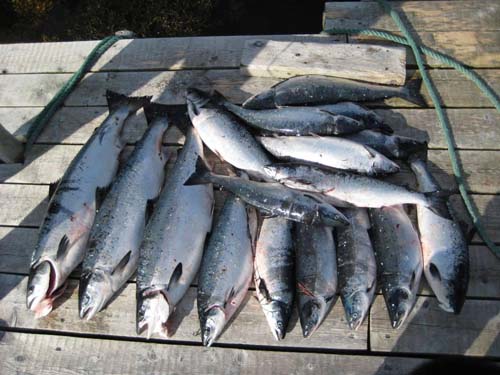 Photo #1: Fish and Wildlife Enforcement officers seized 17 salmon from two illegal gill nets near the community of Conche on the Northern Peninsula, as part of an ongoing investigation. Eight salmon were released.