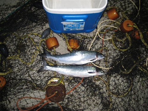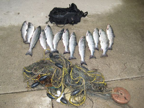 Photo: An illegal net, cooler and two large salmon seized from the Stephenville Crossing area on July 8.