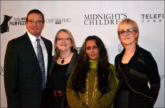 The Honourable Derrick Dalley, Minister of Tourism, Culture and Recreation, on the red carpet with Valerie Creighton, Canada Media Fund; Deepa Mehta, director of Midnight’s Children; and Carolle Brabant, Telefilm Canada, at the opening night gala of the St. John’s International Women’s Film Festival. October 16, 2012.