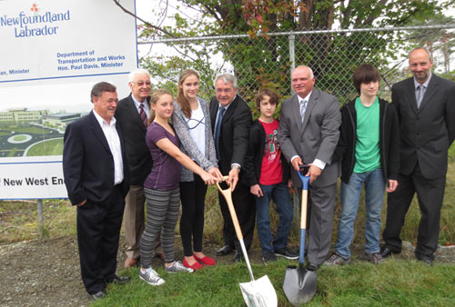 An exciting milestone in the history of education in St. John’s was celebrated today as the Honourable Clyde Jackman, Minister of Education, joined St. John’s West MHA Dan Crummell, Kilbride MHA John Dinn, as well as school district and school council representatives, for a ceremonial groundbreaking event to mark the beginning of construction of a new high school in the west end of St. John’s.