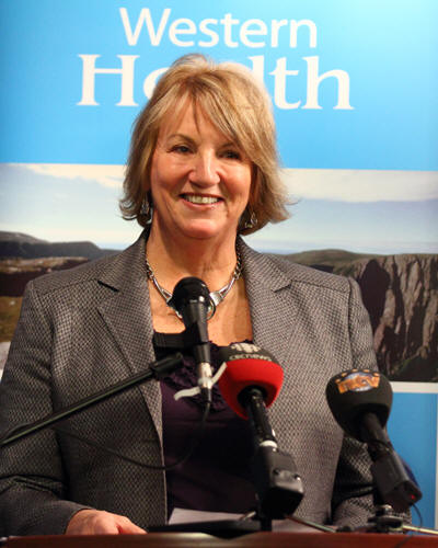 Premier Kathy Dunderale at an announcement regarding the new health care facility in Corner Brook, March 20, 2013.