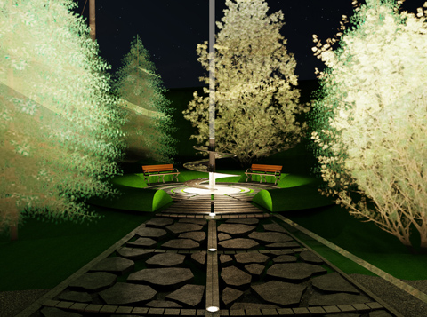 The intent of the memorial is not only to capture the loss of life in two offshore helicopter tragedies, but to offer a sense of lives lived and the rekindling of hope. The monument’s design includes a spiraling stainless steel sculpture at its centre which is representative of the aerial screw prototype of the first rotary-type flying machine envisioned by Leonardo da Vinci in the late 15th century. Along the spiral of the aerial screw, the names of the 23 victims of both helicopter tragedies will be cut into the stainless steel. Light will be a prominent feature of the memorial, and will shine skyward through the open cutwork of the names.