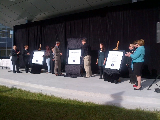 The Honourable Paul Davis, Premier of Newfoundland and Labrador, officially named the new 500-bed residence complex in St. John’s today. Premier Davis was joined by the Honourable Kevin O’Brien, Minister of Advanced Education and Skills, and Dr. Gary Kachanoski, President and Vice-Chancellor of Memorial University.