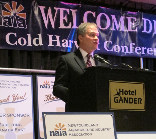 Enhancing biosecurity, pursuing best practices, and continually improving the overall approach to provincial aquaculture were the key themes discussed by the Honourable Keith Hutchings, Minister of Fisheries and Aquaculture, yesterday at the Newfoundland Aquaculture Industry Association Annual Conference and Trade Show. As part of achieving these goals, Minister Hutchings announced a $2 million contribution to help build a new facility for cleaning and repairing nets, and noted a recent contribution of $4.8 million for a newly opened biosecure wharf in Harbour Breton, as well as $200,000 to help the industry undertake a bay management plan.