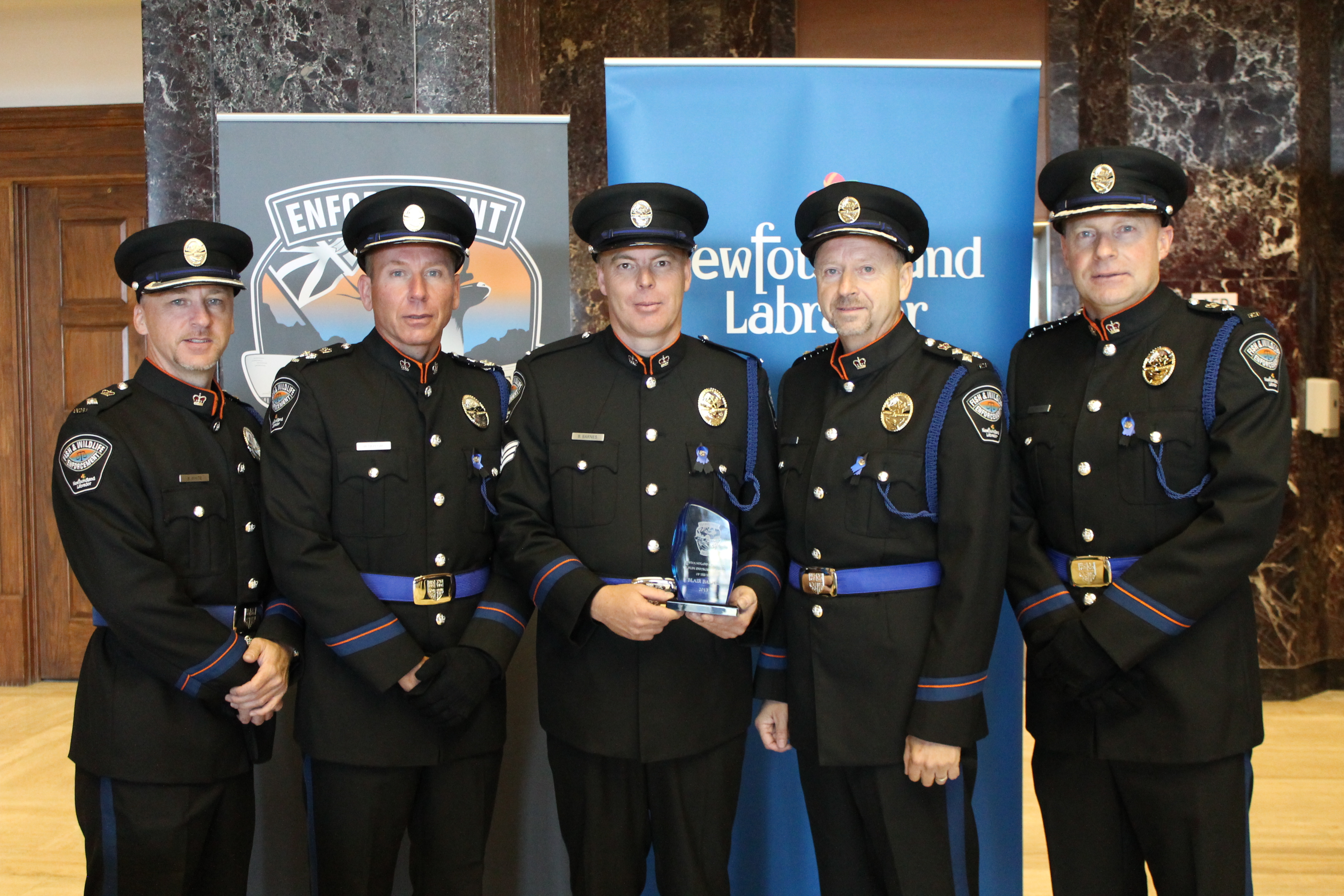 - Officer Blair Barnes of Grand Falls-Windsor was presented with the 2013 Newfoundland and Labrador Wildlife Enforcement Officer of Year Award in ceremony yesterday (Sunday, September 28). He is also the recipient of the 2013 Shikar-Safari Club International Wildlife Officer of the Year Award.