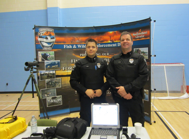 Officers from the St. John’s Detachment visited the St. Michael's Regional High School Career Fair on Bell Island on November 20, and officers from the Corner Brook Detachment visited Elwood Elementary in Deer Lake on December 5. The purpose of the visits was to talk with younger students about caring for Newfoundland and Labrador’s wildlife and environment. Reports from the officers who participated indicate that the students were very interested and asked plenty of questions about the Fish and Wildlife Enforcement Division.