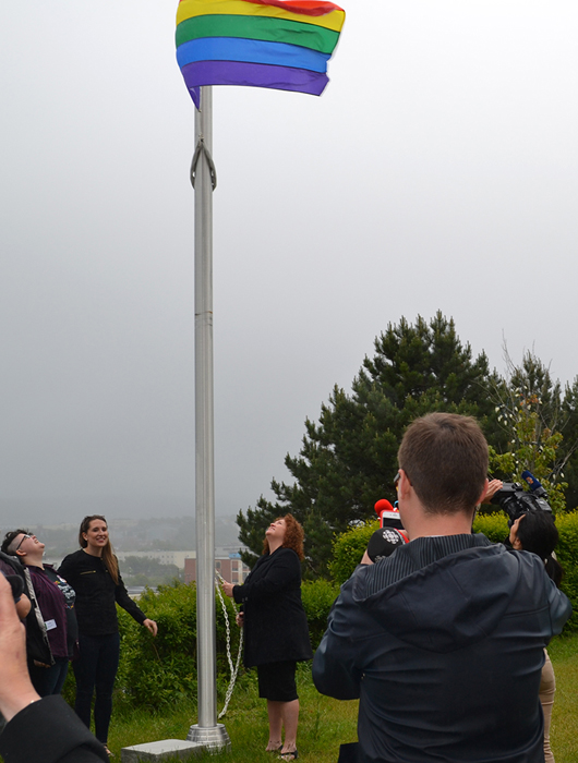 "I am proud to participate in today�s flag-raising ceremony and to promote inclusion and acceptance of all persons in our society. Through the Safe and Caring Schools Policy and the Violence Prevention Initiative, the Provincial Government continues to work to eliminate and reduce all forms of discrimination and violence in our province. We want to work with community groups, including the LGBTQ community, to make further advances toward inclusion and equality for all Newfoundlanders and Labradorians.�